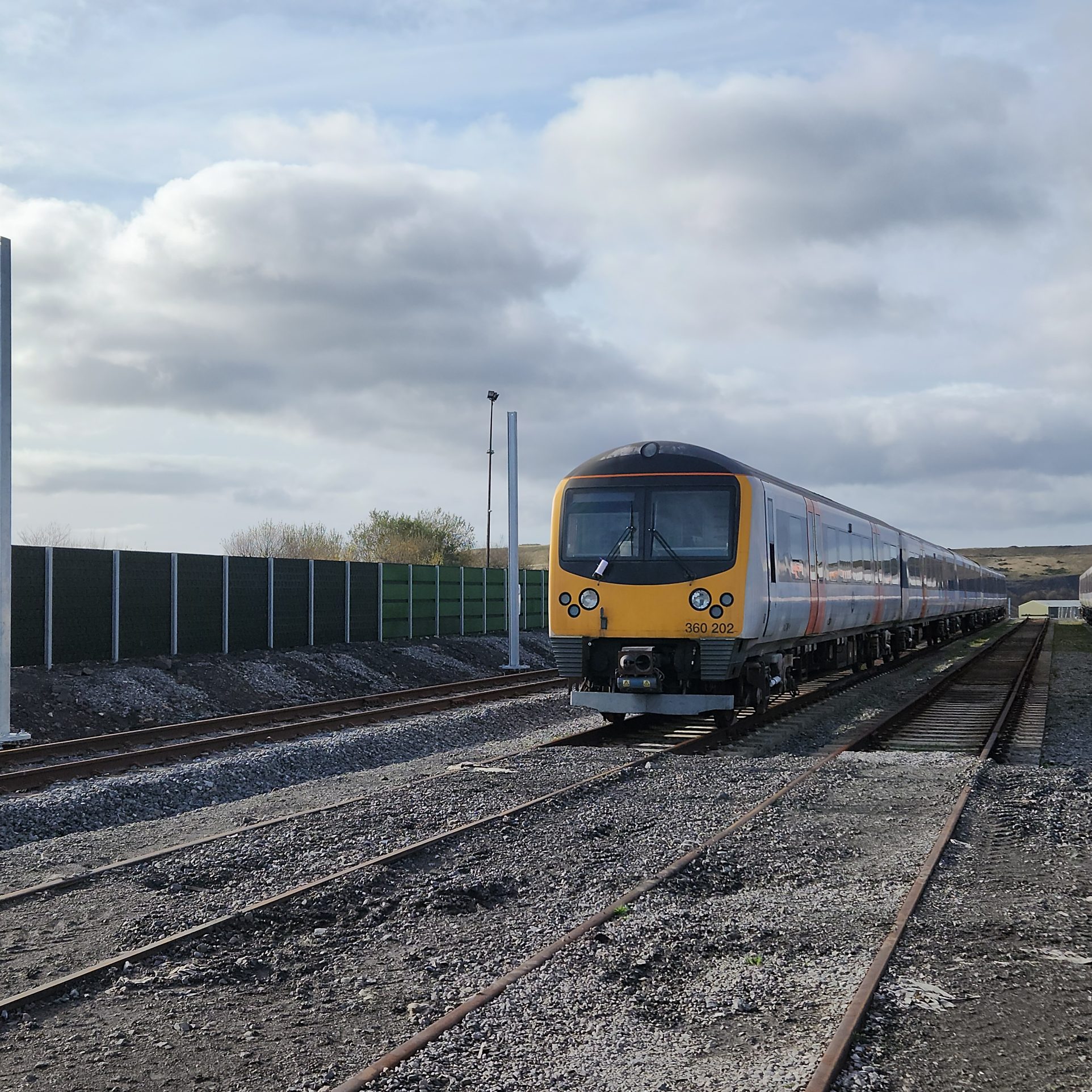 Mae rhwystrau sŵn blaengar yn dechrau cael eu harddangos ar safle Canolfan Fyd-eang Rhagoriaeth Rheilffyrdd